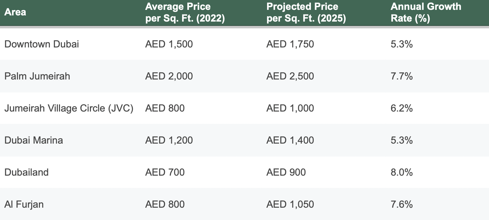 Property prices in Dubai have been rising steadily, with an annual growth rate of 5–8%. Some areas have seen double-digit growth in recent years. Government initiatives, tourism growth, and foreign investor interest keep demand high.