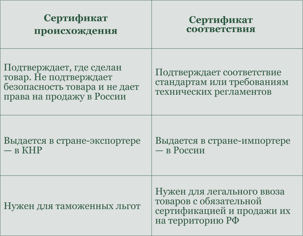При ввозе товаров из Китая в Россию предприниматели сталкиваются с двумя ключевыми документами — сертификатом происхождения и сертификатом соответствия: у них разные функции, их выдают разные органы и нужны они на разных этапах поставки.