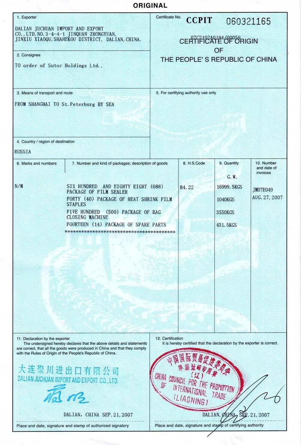 Сертификат происхождения товара — это официальное подтверждение того, что конкретный товар был полностью произведен или переработан в определенной стране, в нашем случае в Китае.