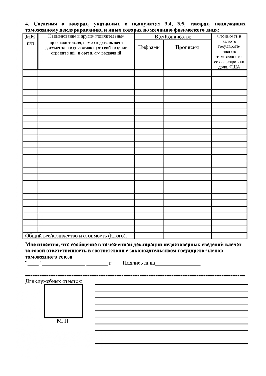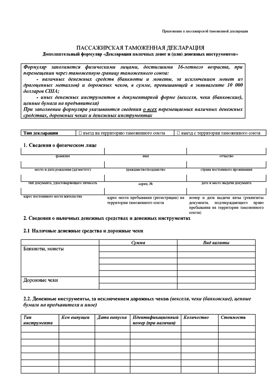Заполненную декларацию нужно предоставить инспектору таможни вместе с пакетом документов: