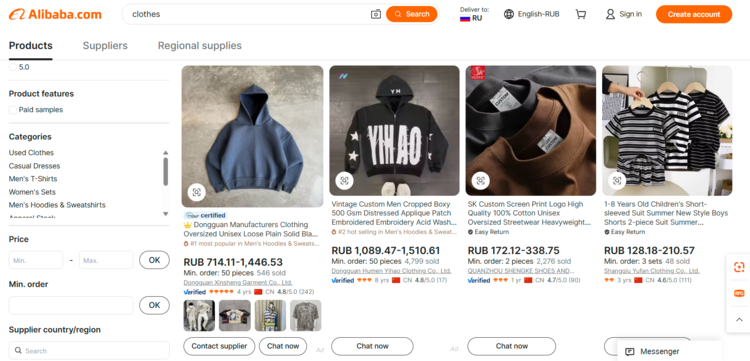 Онлайн-маркетплейсы — самый быстрый и доступный способ выйти на китайский рынок одежды. Они дают доступ к тысячам фабрик и торговых компаний, позволяют сравнивать цены и условия поставки и сразу же проверять репутацию продавцов.