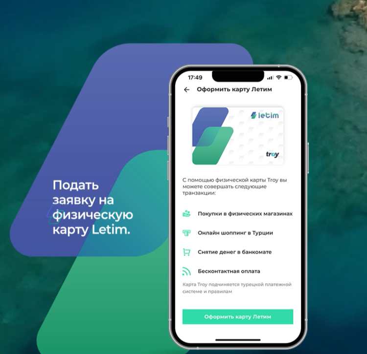 Получить такую карту можно через посредников. Например, сервис Letim помогает открыть счёт в турецком банке и выпустить карту Troy без ВНЖ. Они оформляют все документы дистанционно и предоставляют турецкий номер телефона при регистрации. Счёт открывается в Ziraat Bankası или VakıfBank. Пополнить счет можно через СБП, но, судя по отзывам, деньги могут прийти мгновенно, а могут через сутки. Работает такая карта только через приложение Letim при наличии доступа в интернет. Перед использованием изучите отзывы и размеры комиссий.