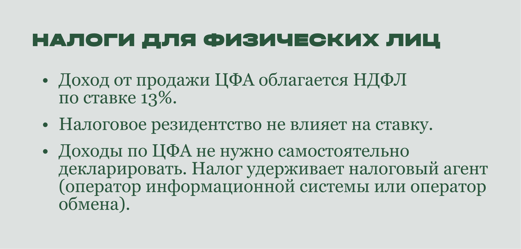 Летом 2022 года в Налоговый кодекс были внесены поправки, регулирующие вопросы налогообложения при работе с ЦФА.